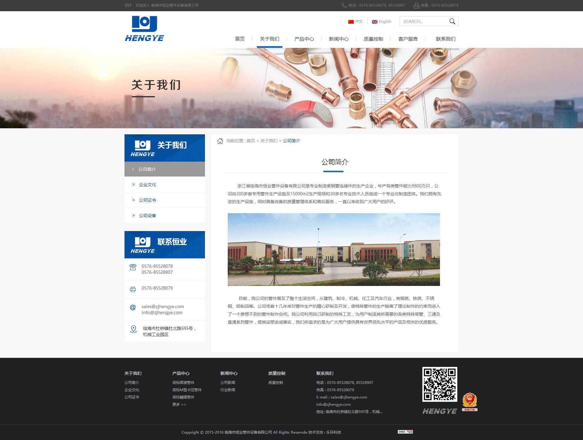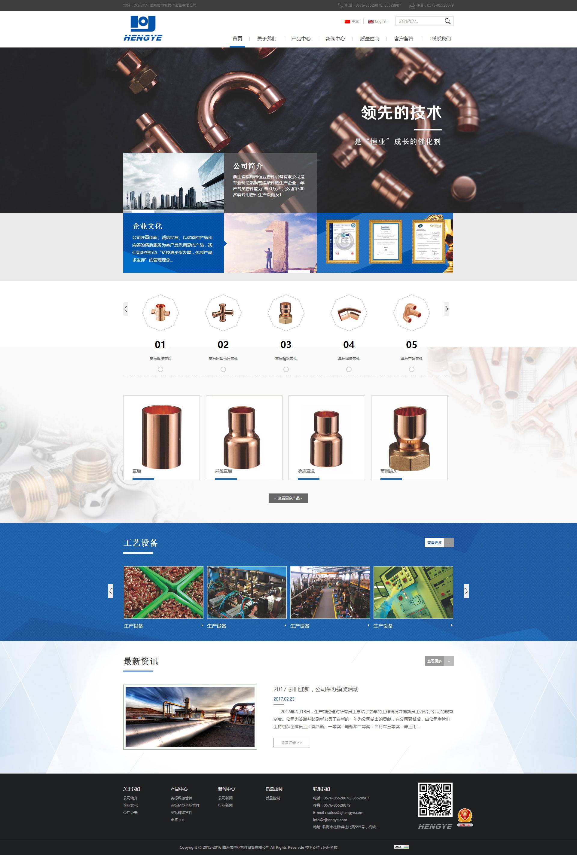 浙江省臨海市恒業(yè)管件設(shè)備有限公司是專業(yè)制造紫銅管連接件的生產(chǎn)企業(yè),年產(chǎn)各類管件能力9800萬只,公司由300多套專用管件生產(chǎn)設(shè)施及15000m2生產(chǎn)現(xiàn)場和30多名專業(yè)技術(shù)人員組成一個專業(yè)化制造團體。我們擁有先進的生產(chǎn)設(shè)施,同時具備完備的質(zhì)量管理體系和售后服務(wù),一直以來收到廣大用戶的好評。