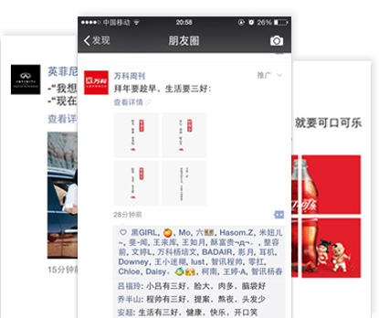朋友圈廣告將會(huì)通過(guò)微信廣告系統(tǒng)進(jìn)行投放和管理,廣告本身內(nèi)容將基于微信公眾賬號(hào)生態(tài)體系,以類似朋友的原創(chuàng)內(nèi)容形式進(jìn)行展現(xiàn),在基于微信用戶畫像進(jìn)行定向的同時(shí),依托關(guān)系鏈進(jìn)行互動(dòng)傳播