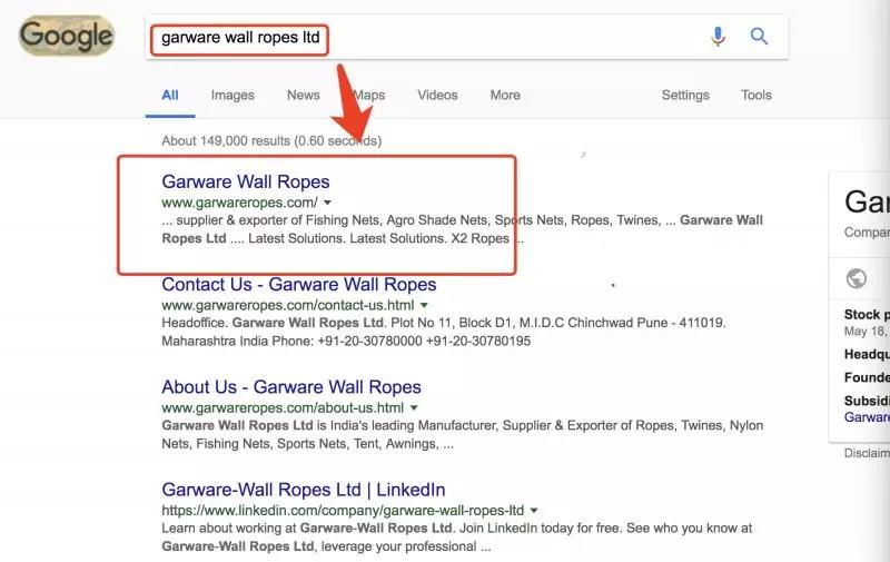放大細節(jié),選擇了其中一家(garware wall ropes ltd )做分析,可以很清楚的看到,他采購過pp rope,但是沒有具體聯(lián)系方式,怎么辦?如下: