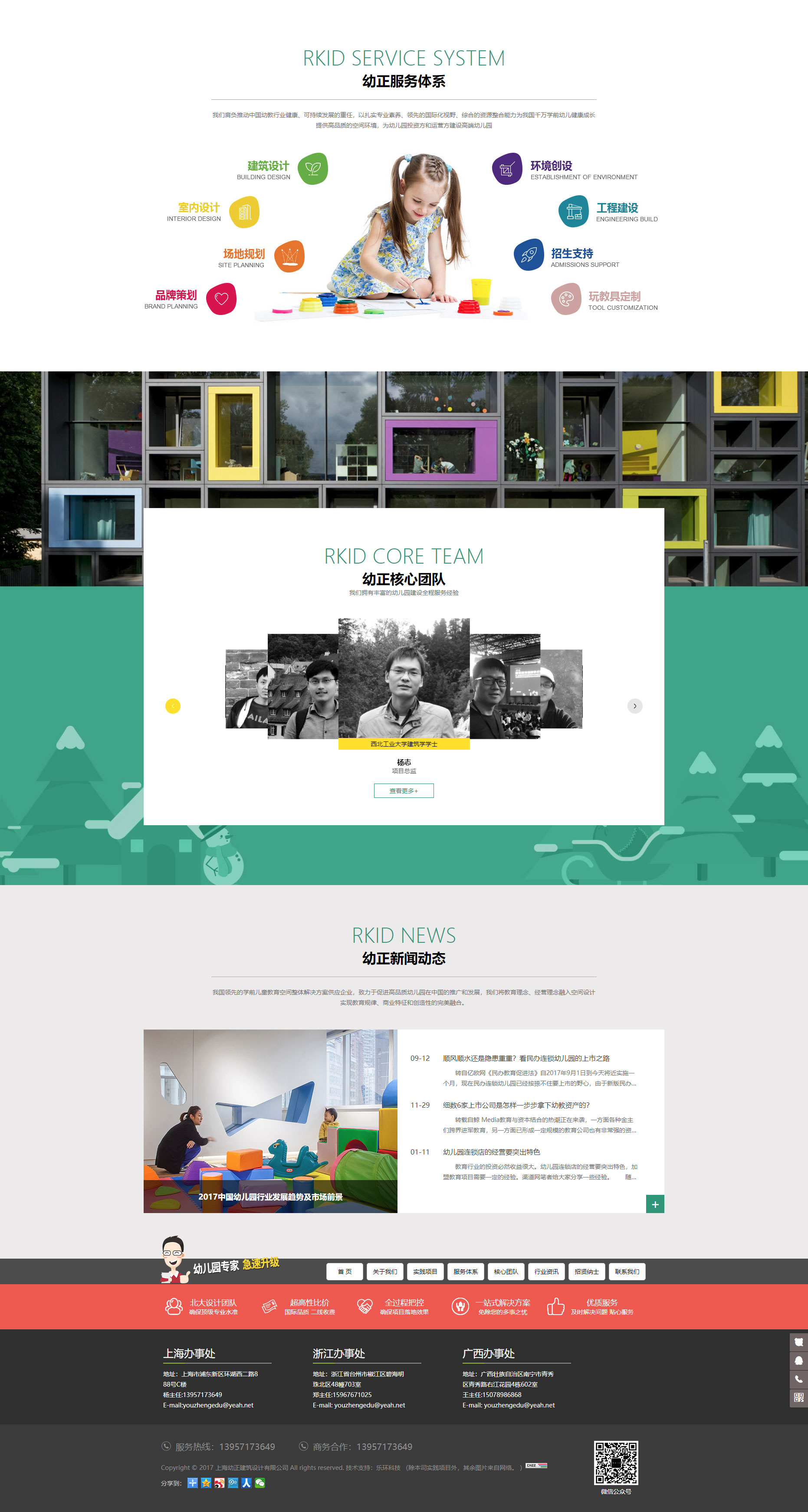 我們擁有豐富的幼兒園建設(shè)全程服務(wù)經(jīng)驗(yàn),擁有一支由建筑師、室內(nèi)設(shè)計(jì)師、景觀設(shè)計(jì)師、平面設(shè)計(jì)師和資深幼教專家組成的跨領(lǐng)域的一流服務(wù)團(tuán)隊(duì)。我們肩負(fù)推動(dòng)中國幼教行業(yè)健康、可持續(xù)發(fā)展的重任,以扎實(shí)專業(yè)素養(yǎng)、領(lǐng)先的國際化視野、綜合的資源整合能力為我國千萬學(xué)前幼兒健康成長提供高品質(zhì)的空間環(huán)境,為幼兒園投資方和運(yùn)營方建設(shè)高端幼兒園,樹立品牌形象提供高性價(jià)比的全過程、一站式的專業(yè)服務(wù)。