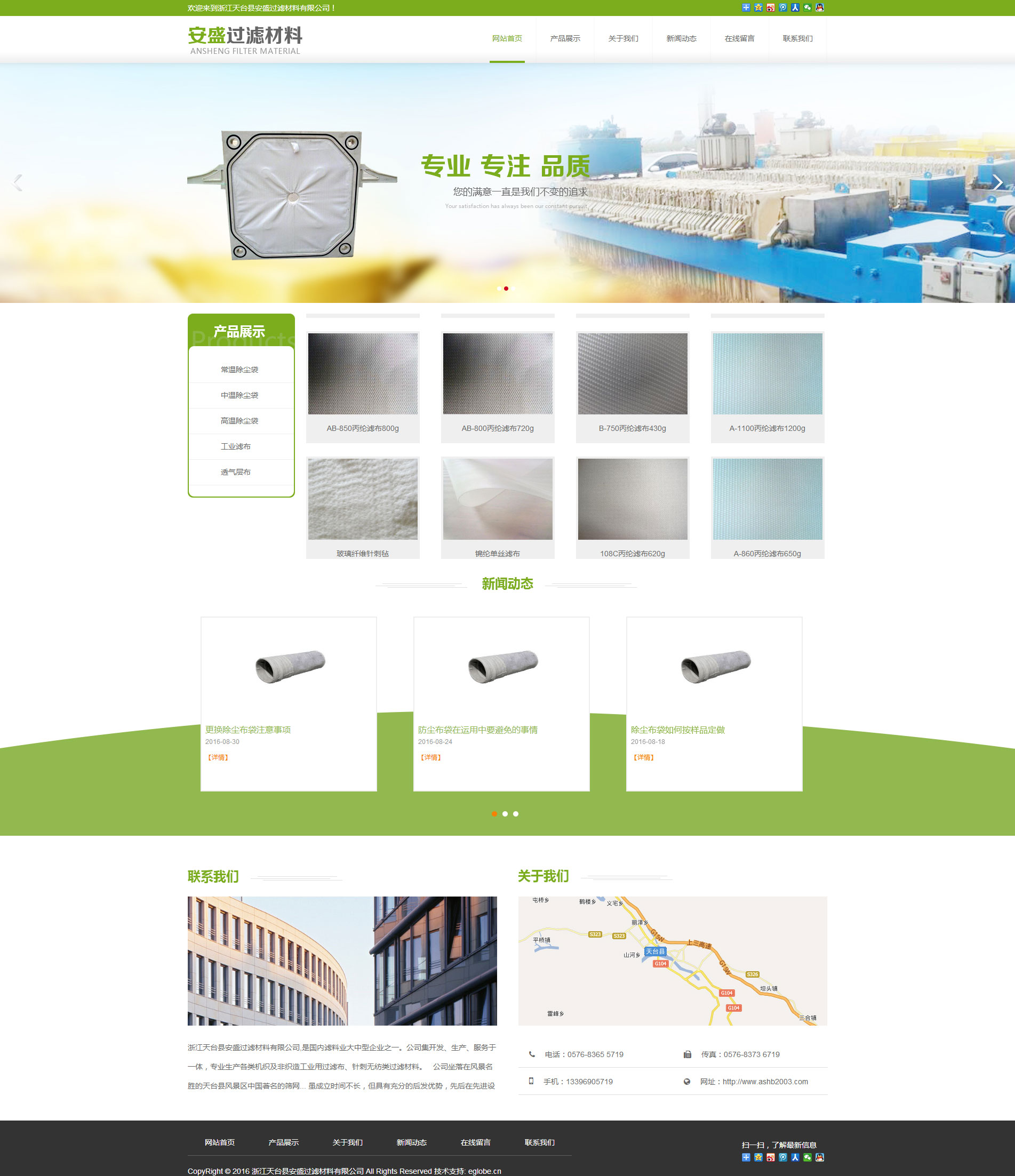 浙江天臺縣安盛過濾材料有限公司,是國內(nèi)濾料業(yè)大中型企業(yè)之一。公司集開發(fā)、生產(chǎn)、服務于一體,專業(yè)生產(chǎn)各類機織及非織造工業(yè)用過濾布、針刺無紡類過濾材料。